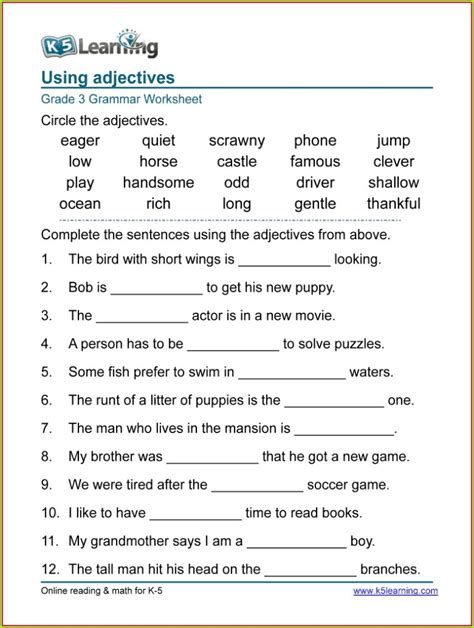 Some Of The Worksheets Displayed Are Grade 3 Adjectives Work,.