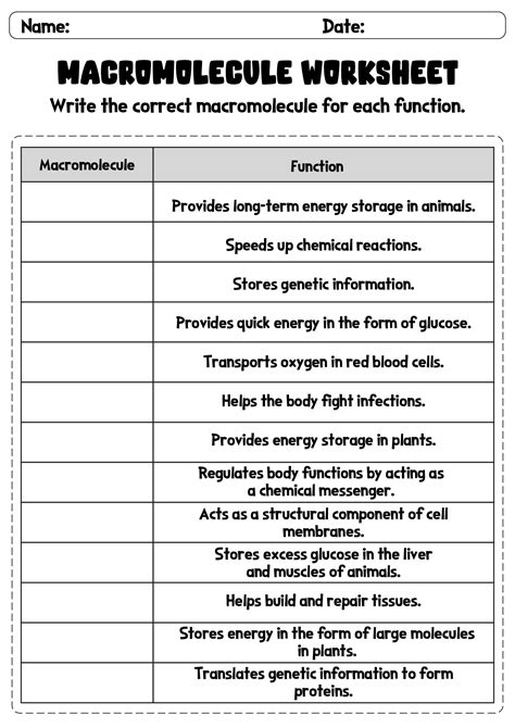 Skill summary legend (opens a modal) about this unit. Web major macromolecules' tests, atoms, monomer, polymer, function, examples (incomplete). Web practice name date period (flanomets and (foélmeu (worksheet action.