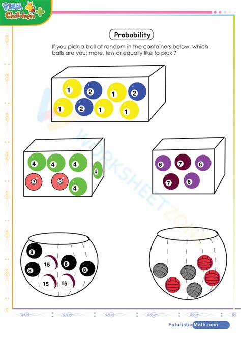 Worksheets Are Nc Math 2 Probability, Probability Of Numbers Work, Balls In A Container, Math 6Th Grade Stats.