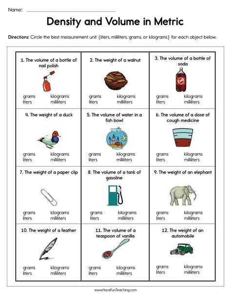 Web density worksheets and online exercises. A cube with side length 7 7 m has a density of 10,800,000 10,800,000 kg/m ^3 3. Web how to use the density mass volume formula triangle and find volume of shapes.