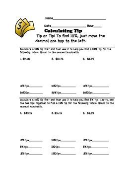 Some Of The Worksheets Displayed Are Math Tip Work, Math Tip Work, Tip And Tax Homework Work, Name Period.