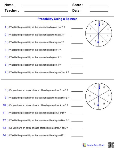 Web Probability Worksheets And Online Activities.
