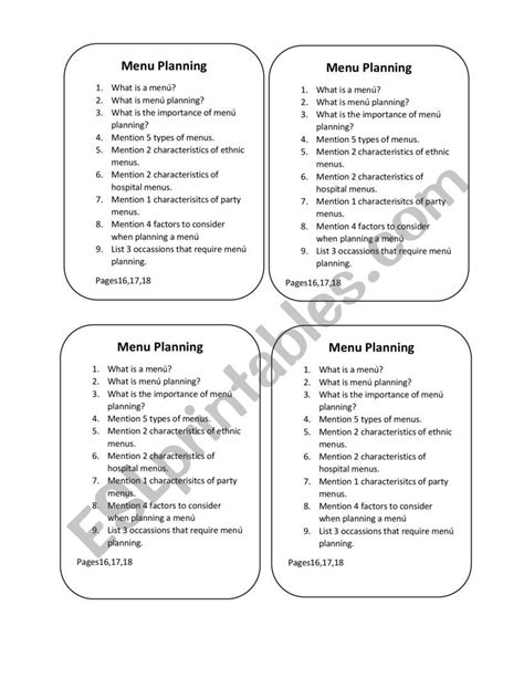 In this free food and drink activity, students match. Web after establishing the characteristics of the genre, students work in groups to choose a restaurant and then create their own custom menus. Students plan a menu for a family of four for a day.
