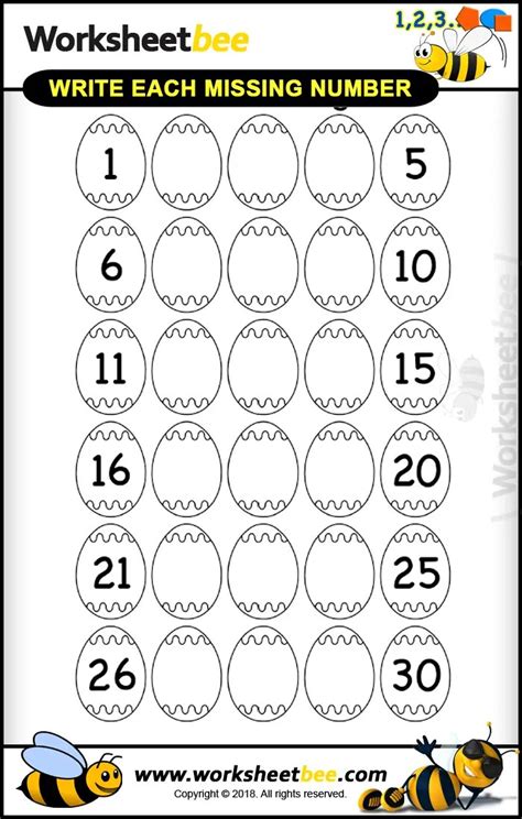 Printable Worksheet for Kids About to Write Each Missing Numbesr 1 30 from worksheetbee.com