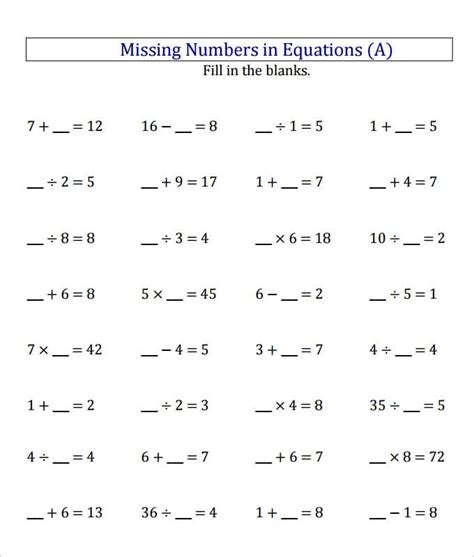 Web missing numbers in equations. Web students can use math worksheets to master a math skill through practice, in a study group or for peer tutoring. Adding, subtracting, multiplying and dividing numbers are vital elements in solving questions, but the real job is to find the unknown in the equation, that too, with.