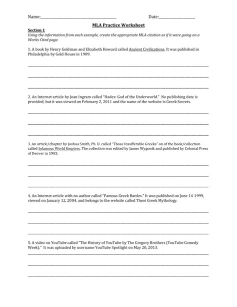 MLA Practice Worksheet from studylib.net