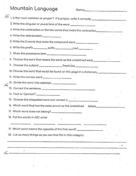 2nd Grade Mountain Language Worksheet from doctordumbbell.com