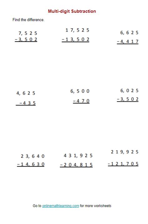 Web Create Multiple Digit Subtraction Worksheets.