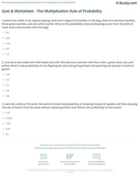 Multiplication Rule Of Probability Worksheet. This worksheet has 23 questions where students are required to use the multiplication rule of probability to solve. Explain the addition rule of probability.